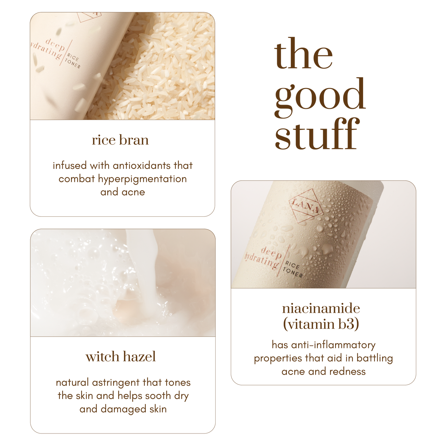 Experience the gentle care of Lana’s fragrance and alcohol-free rice toner, specially formulated for sensitive skin. A powerhouse of antioxidants, that targets concerns such as hyperpigmentation, acne, and signs of aging.