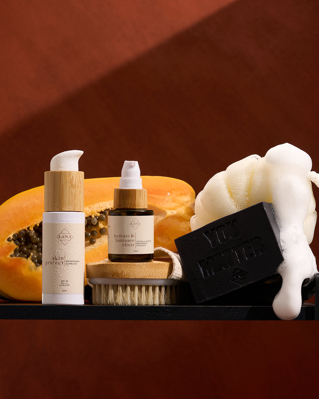 1. Wet and lather onto face or body with lukewarm water.