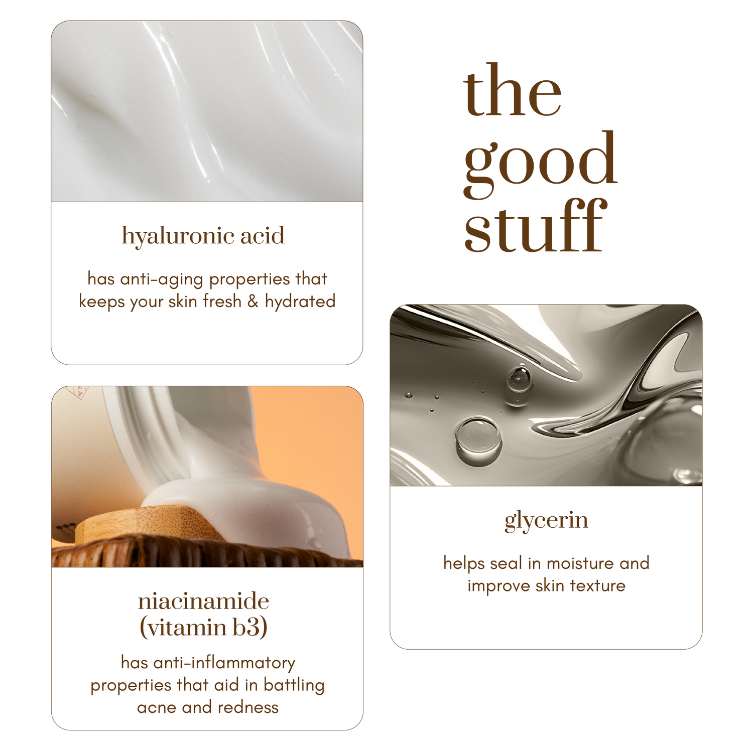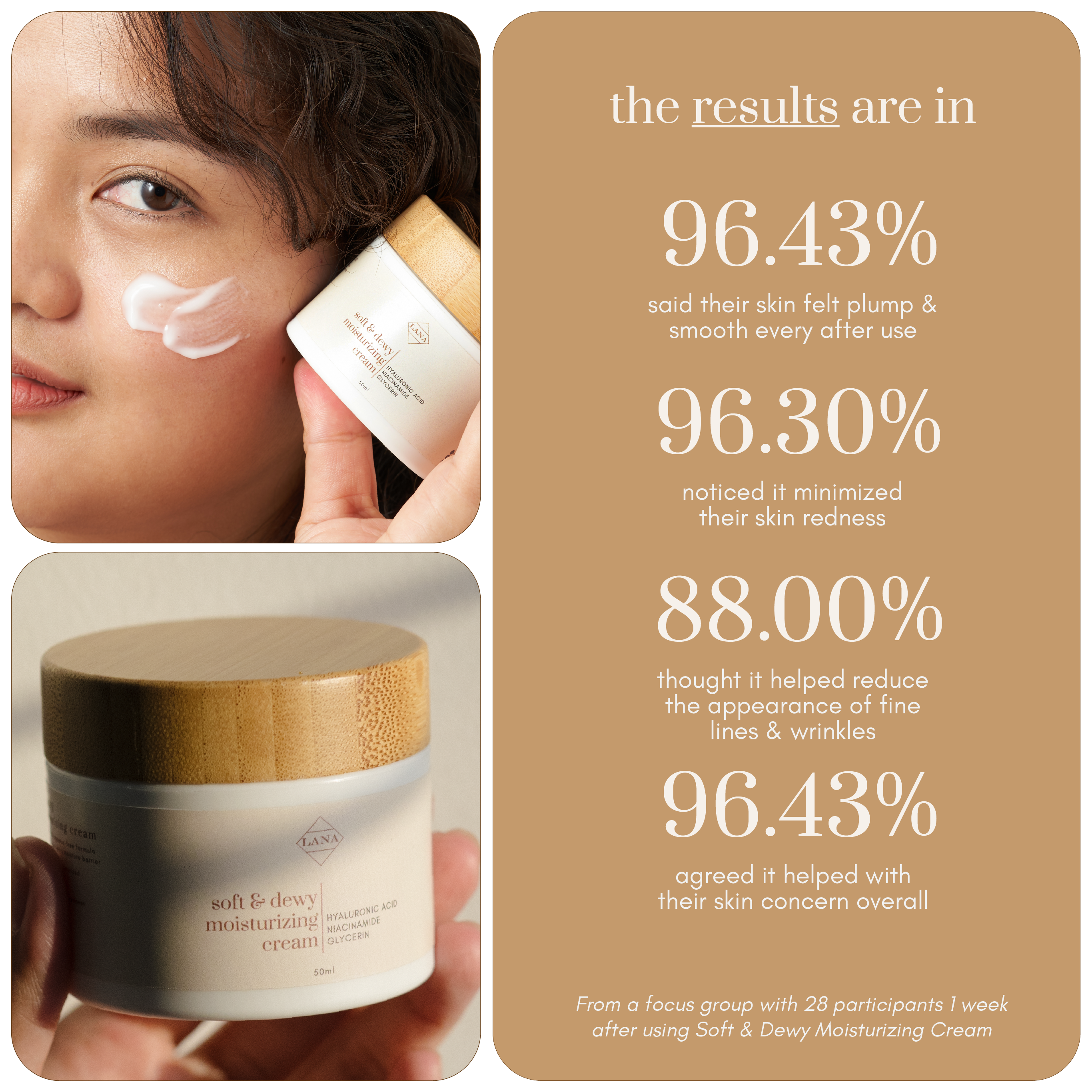 1. Use an almond sized amount of your Moisturizing cream, applying it evenly across your face & neck.