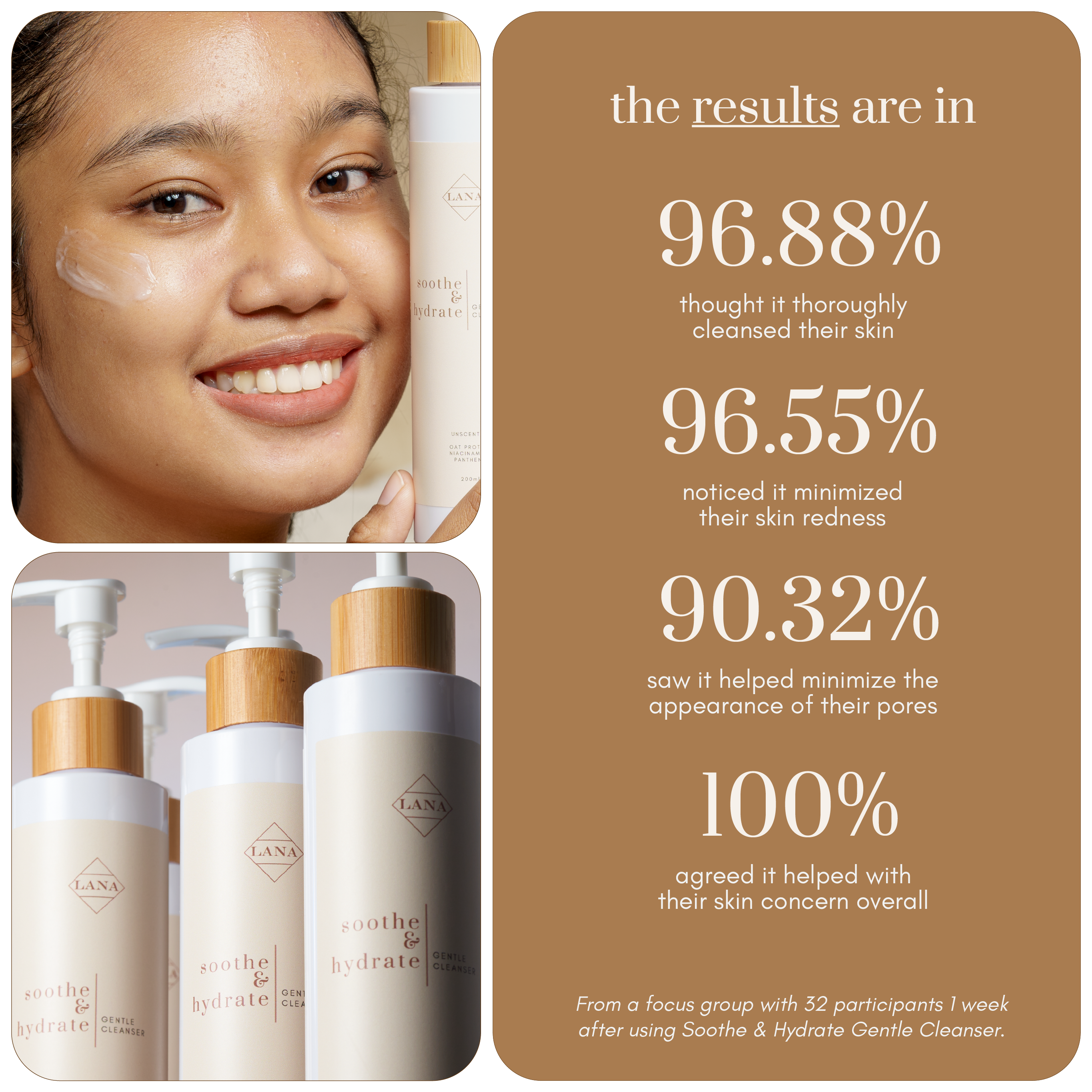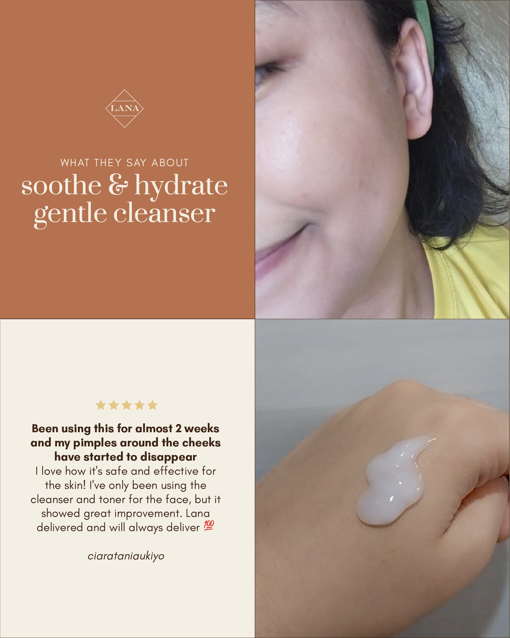 I have a dry and acne prone skin so I've been struggling to find a product that will really work for me. I've tried a lot of products and the results were the same, I am not satisfied then I found Lana and gave it a shot, and I was really impressed with how effective it is for me. It helped with my pimple marks, made my face looked smooth and it's super soft too! I can really see the improvement of my skin after 3 months of using the products. I'll be using Lana forever!☺